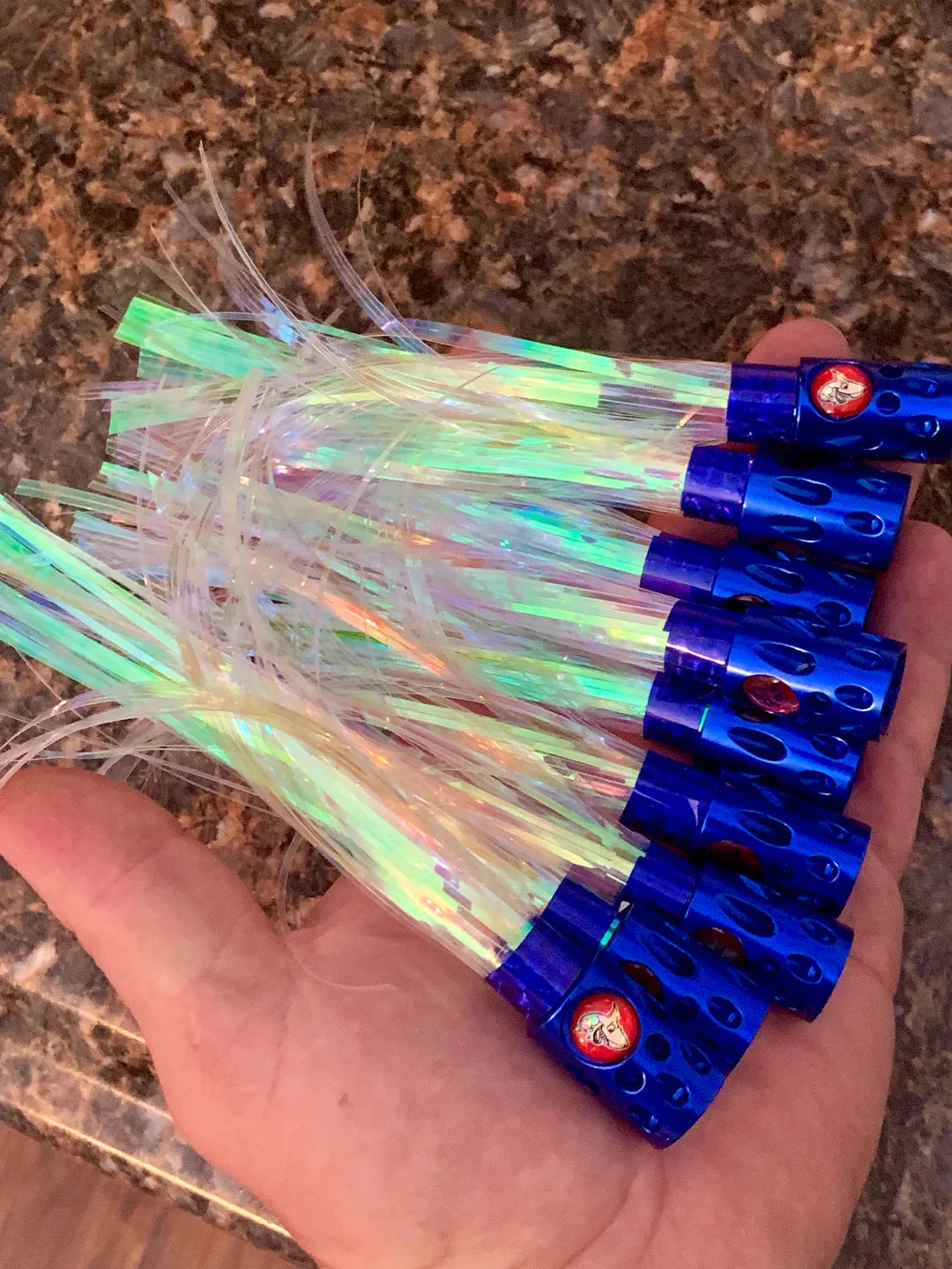 These are deadly on blackfin tuna , wahoo , mahi , mackeral and most offshore Pelagics. These are double skirted. Troll these from 4 to 8 mph without any bait . The jet heads leave a bubble trail .