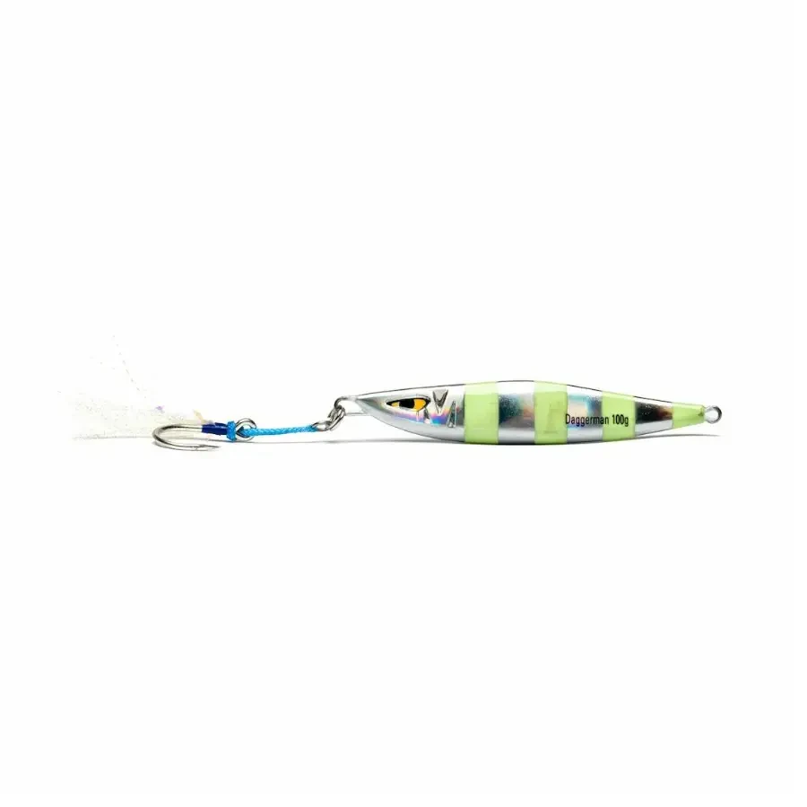 The Daggerman is best presented in short rapid pumps with short pauses in between. The aerodynamically shaped Daggerman rips through the water column, drawing the attention of nearby predator and during the short pause, immediately dips head down, resembling the natural movement of a struggling baitfish. Most hits are usually encountered right after the pause.
